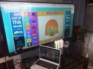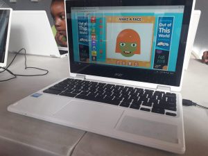 Na een algemene introductie door juf Ansje en assistente Mary-Ann, mochten de kinderen de laptop uitpakken en als snel zijn ze begonnen aan het eerste educatieve spel: Make a Face! Dit kun je zelf spelen: http://www.abcya.com/make_a_face.htm