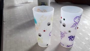 Als laatste maakten de jongeren bekers, die ze alle volgende lessen mee moeten nemen, zodat er geen wegwerpcups gebruikt worden.