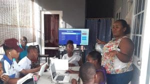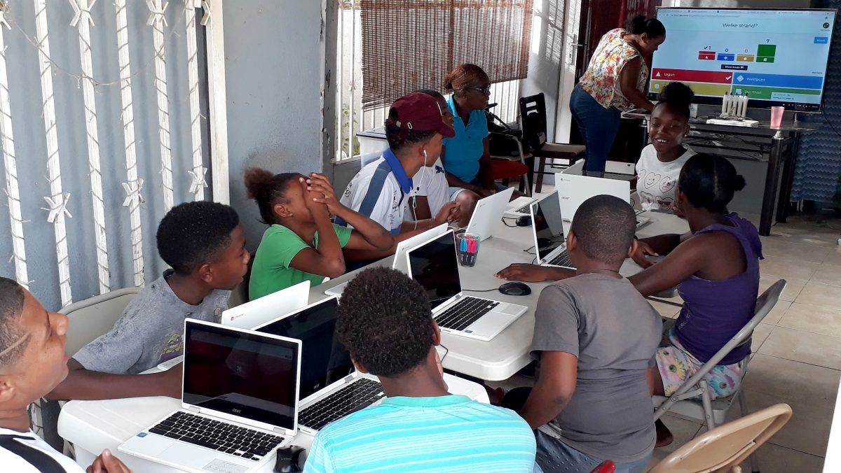 Na de introductie en het uitpakken van de laptops begonnen de jongeren al gauw aan een Kahoot! over Curaçao. Kahoot! is een quiz programma met een wedstrijdelement en de jongeren zijn er dol op. Docenten kunnen zelf een quiz maken, maar jongeren zelf ook!