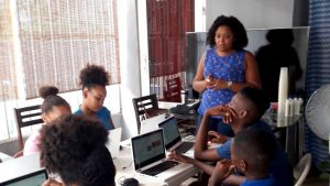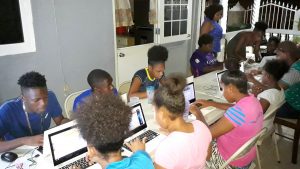 Na de introductie en het uitpakken van de laptops begonnen de jongeren kennis te maken met het toetsenbord via ‘Touch Typing Studio‘.