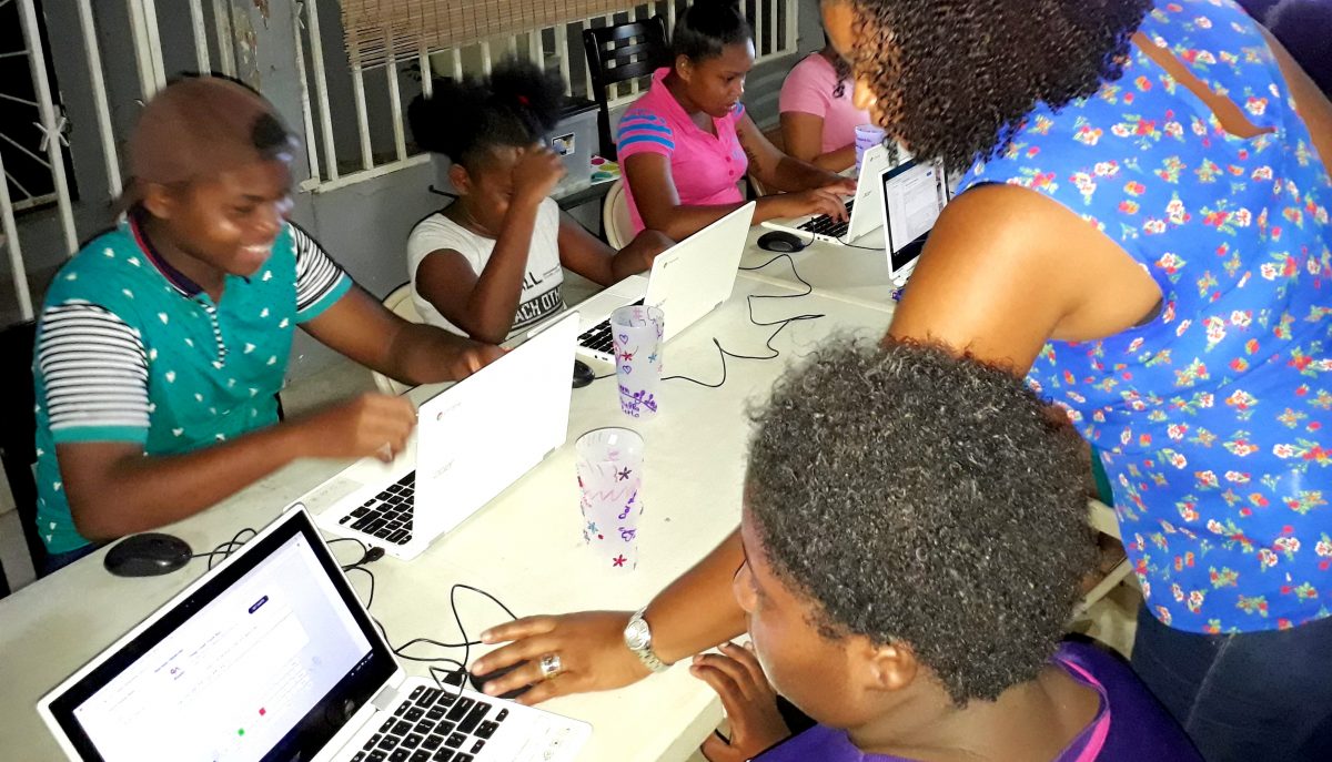 Na de introductie en het uitpakken van de laptops begonnen de jongeren kennis te maken met het toetsenbord via ‘Touch Typing Studio‘.
