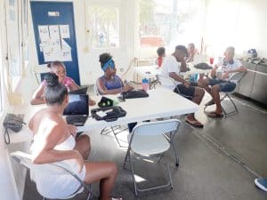 Ace Suares van Curaçao Computer Museum gaf een korte demonstratie van game computers uit de jaren 80. Ook konden de jongeren voelen hoe zwaar een 10 Megabyte harddisk in die tijd was.